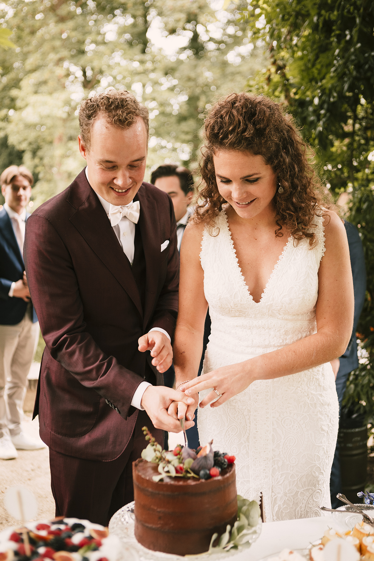 Het was een prachtige dag bij tuin de lage oorsprong in Oosterbeek. Ze hebben de dag helemaal gemaakt zodat het voor hun perfect was, samen aankleden bij groot warnsborn (ze hadden elkaar toch al gezien), customized sneakers, heerlijke taart van de bakbar en zelfs een mannenhoekje met sigaren!
